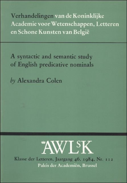 SYNTACTIC AND SEMANTIC STUDY OF ENGLISH PREDICATIVE NOMINALS.