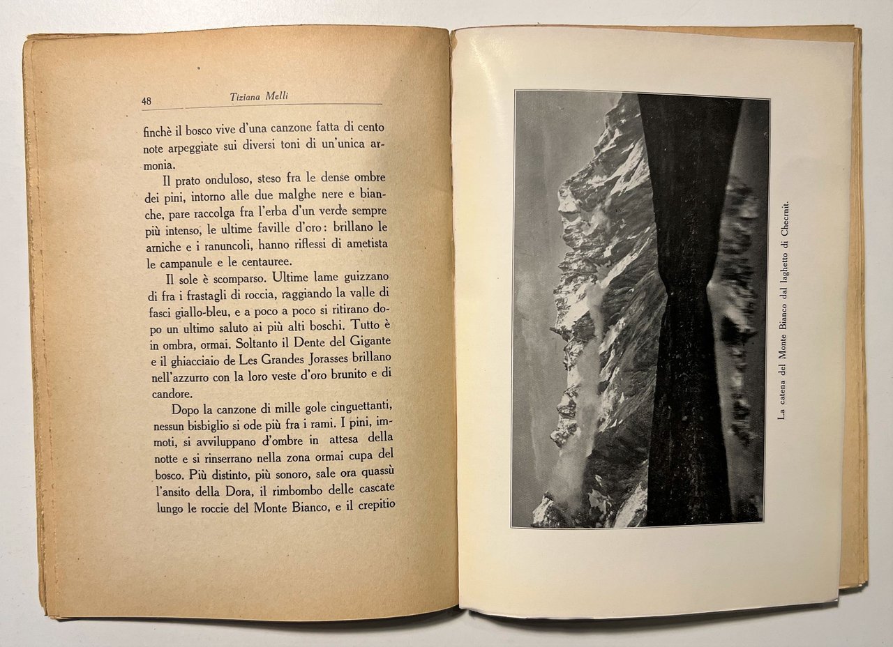 T. Melli - Prati e Ghiacciai dal Sestrières al Monte Bianco - ed. 1934 Testo in lingua italiana. Pagine 168 con illustrazioni. Copertina morbida. Condizioni interni molto buone, copertina con segni del tempo.