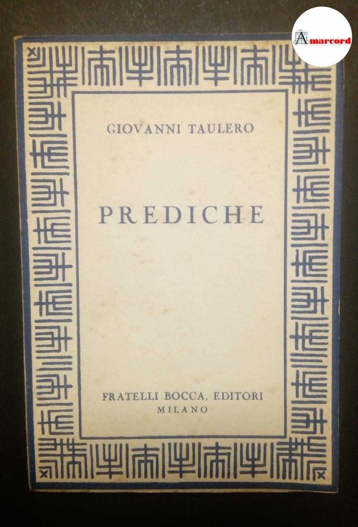 Taulero Giovanni, Prediche, Bocca, 1942, in-16, brossura editoriale, pp. 171. Collana "Breviari mistici".