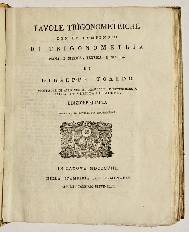 Tavole trigonometriche con un compendio di trigonometria piana e sferica, teorica, e pratica.
