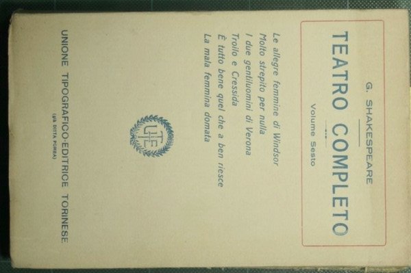 Le allegre femmine di Windsor. Molto strepito per nulla. I due gentiluomini di Verona. Troilo e Cressida. È tutto bene quel che a ben riesce. La mala femmina domata - Traduzione di Carlo Rusconi. Edizione definitiva - in 16° - pp.435 - Brossura editoriale