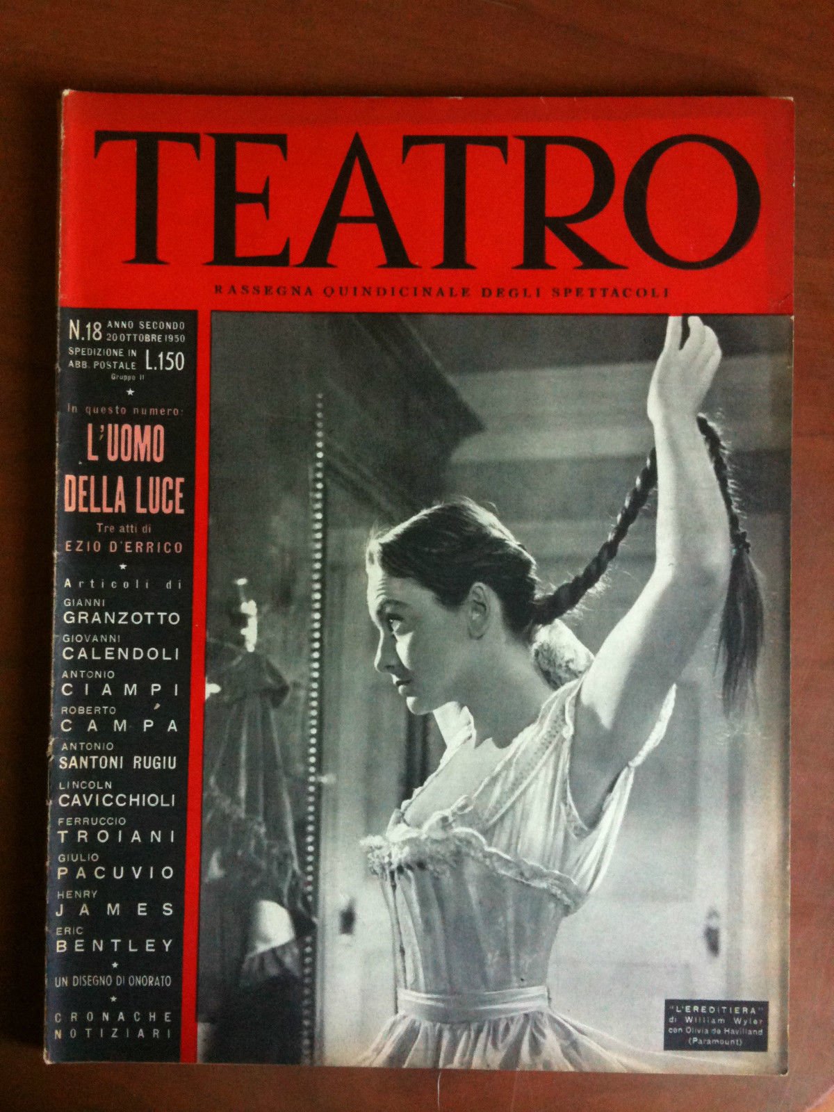 TEATRORassegna quindicinale degli spettacolin^ 18 anno secondo 20 Ottobre 1950Copertina: Olivia de Havilland in "L'Ereditiera "In buone condizioni (130 g)E4704
