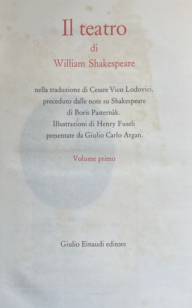 Traduzione di Cesare Vico Lodovici, preceduto dalle note su Shakespeare di Borís Pasternàk.