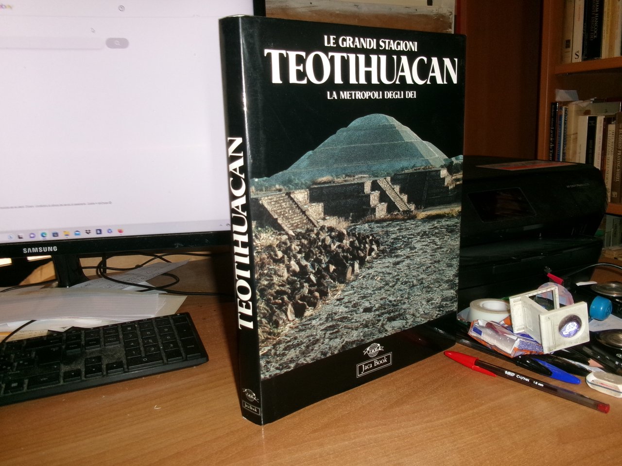 EDUARDO MATOS MOCTEZUMA. Milano, Edizione speciale per Jaca Book, 1991. TEOTIHUACAN La Metropoli degli Dei. Revisione e consulenza per l' edizione italiana Laura Laurencich Minelli. In-4°, tela edit. bleu con sovracopertina ill. a col. 239 pp. con numerose illustrazioni a colori e in bianco e nero anche a piena e doppia pagina. Come nuovo. Uff. C - II - 4 - 2
