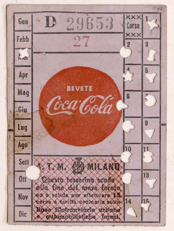 Tessera ATM Milano - 1960 ca. / Pubblicità Coca Cola