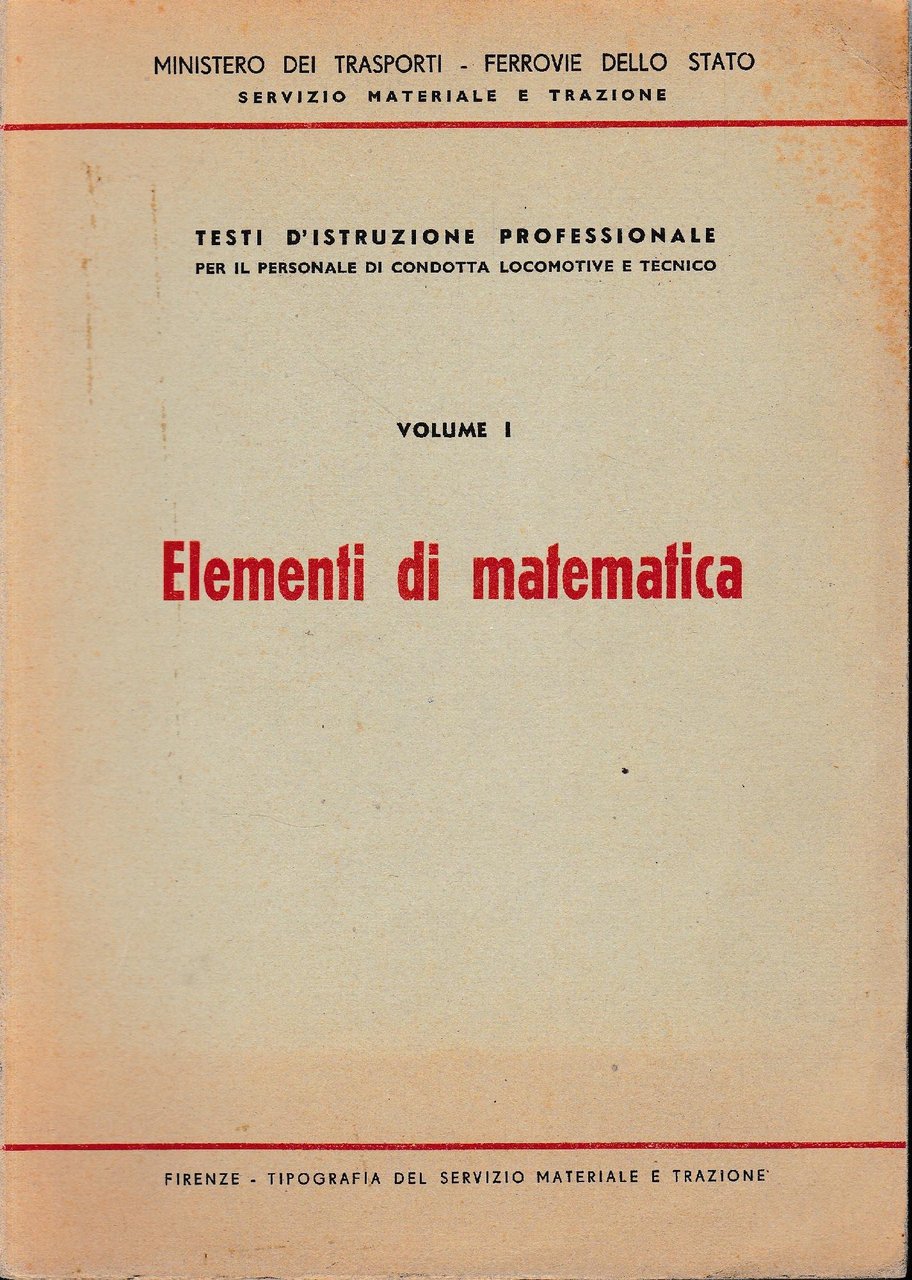 Testi d'istruzione professionale per il personale di condotta delle locomotive e tecnico. Vol I, Elementi di matematica