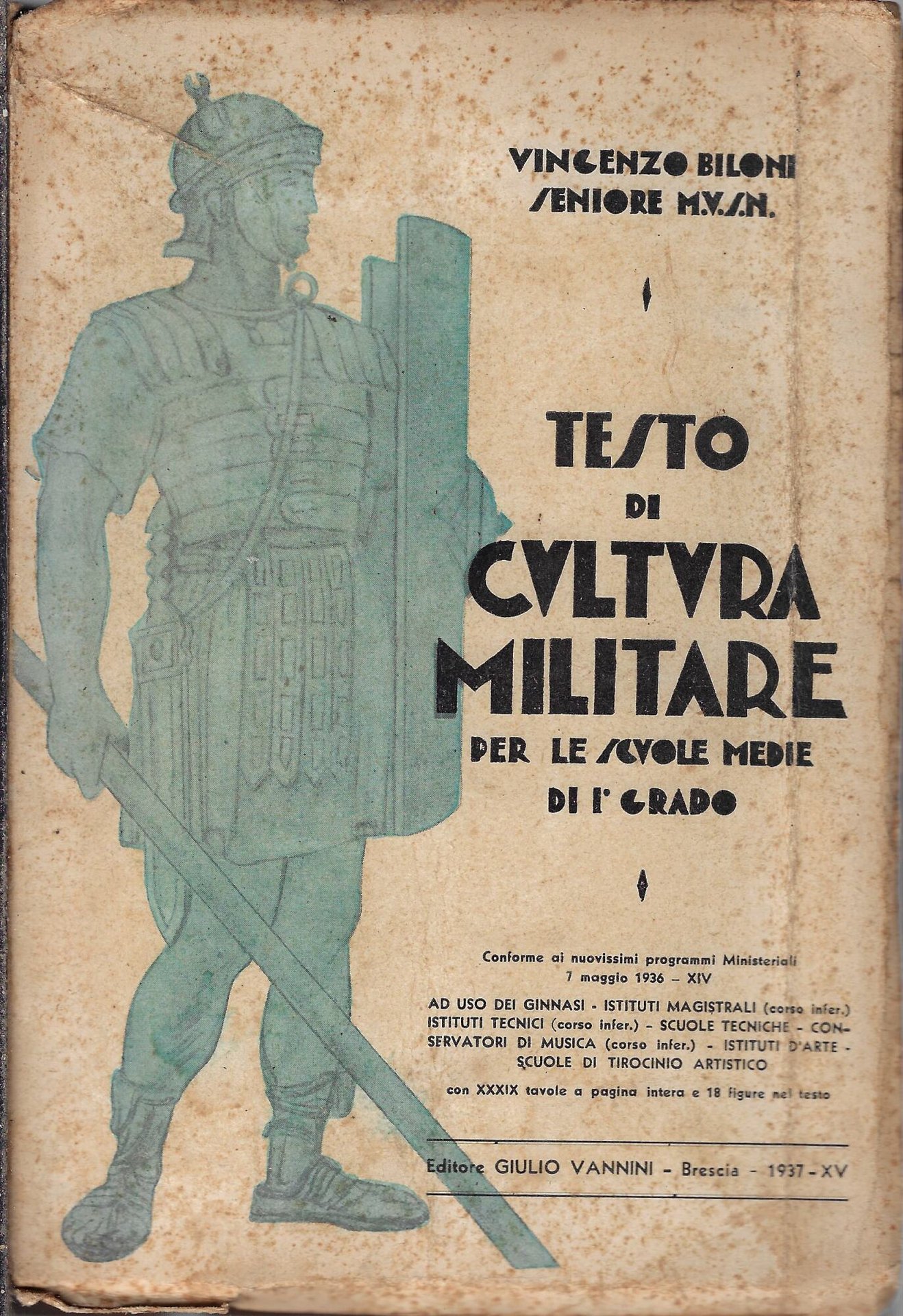 Testo di cultura militare : per le scuole medie di 1^ grado, conforme ai nuovissimi programmi ministeriali R. D. 7 maggio 1936