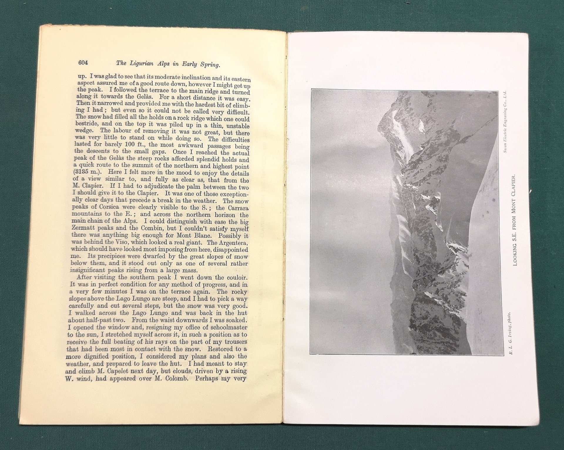 >in-8, pp. 575-678, tavole in nero f.t., broch. edit (dorso restaurato). Edizione originale. The Alpine Journal, fondato nel 1863, è la più antica rivista di alpinismo. In questo numero, tra gli altri articoli: Alpine accidents in 1911, The Alpine club library, The Ligurian Alps in early spring. Discreto esemplare.