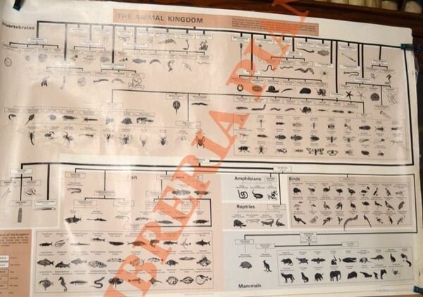 - manifesto di cm. 50 x 70 con schema esplicativo figurato di, tutti i phyla del regno animale.