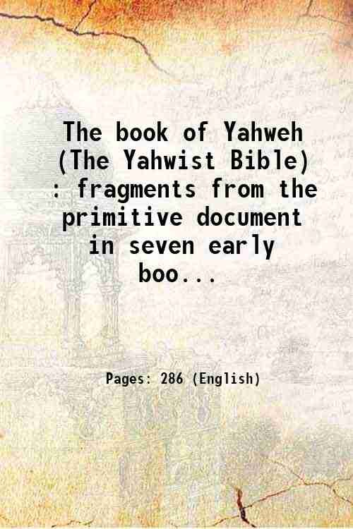 The book of Yahweh (The Yahwist Bible) : fragments from the primitive document in seven early books of the Old Testament / by an unknown genius of the ninth century, B.C. ; arranged by Clarimond Mansfield. 1922