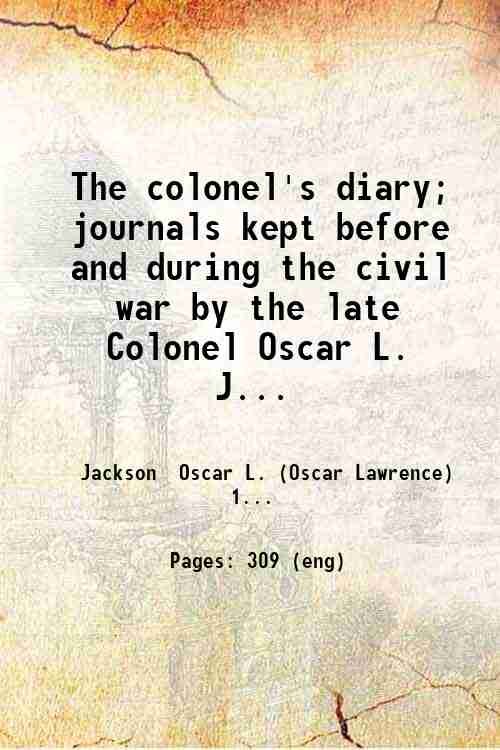 The colonel's diary; journals kept before and during the civil war by the late Colonel Oscar L. Jackson.sometime commander of the 63rd regiment O. V. I. 1922