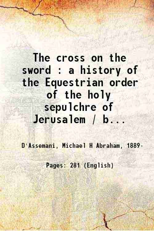 The cross on the sword : a history of the Equestrian order of the holy sepulchre of Jerusalem / by Michael H. Abraham d'Assemani . 1944