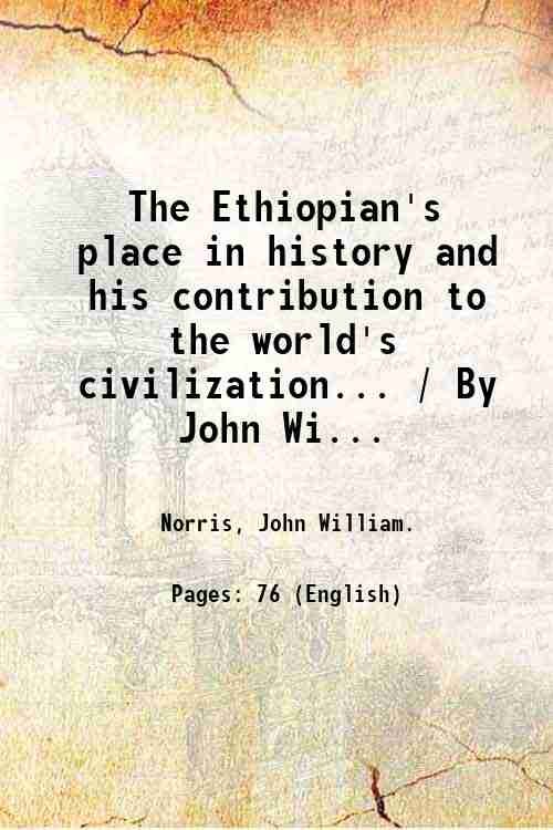 The Ethiopian's place in history and his contribution to the world's civilization. / By John William Norris. 1916 | Rare and modern books | Norris, John William.
