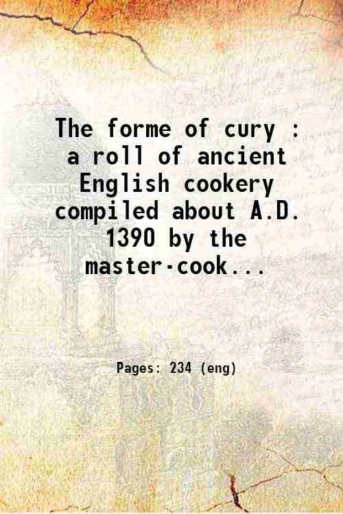 The forme of cury : a roll of ancient English cookery compiled about A.D. 1390 by the master-cooks of King Richard II presented afterwards to Queen Elizabeth by Edward Lord Stafford and now in the possession of Gustavus Brander Esq. / illustrated with notes and a copious index or glossary ; a manuscript of the editor of the same age and subject with other congruous matters are subjoined. 1780