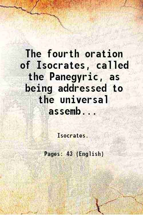 The fourth oration of Isocrates, called the Panegyric, as being addressed to the universal assembly of all Greece, exhorting the Grecians to concord, and undertaking jointly a war against the Persians. 1875