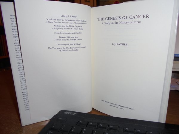 L.J. RATHER. Baltimore and London, The Johns Hopkins University Press, 1978. The Genesis of Cancer. A Study in the History of Ideas. In-8°, tela edit. con sovracopertina. xiii, 262 pp. Ottimo esemplare. Uff. C - IV - 4