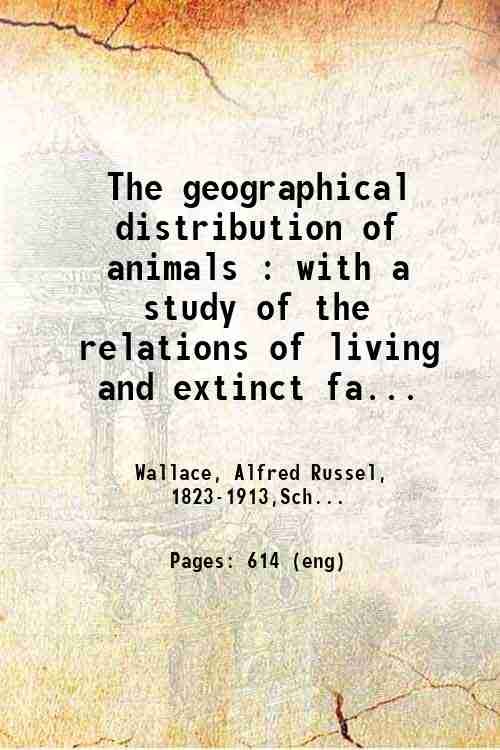 The geographical distribution of animals : with a study of the relations of living and extinct faunas as elucidating the past changes of the earth's surface Volume 1 1876