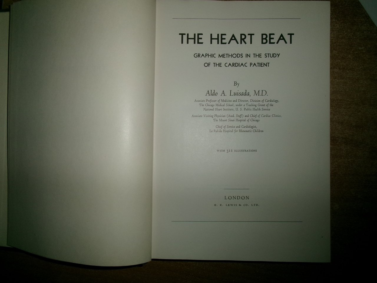 ALDO A. LUISADA. London, Lewis, 1953. The Heart Beat. Graphic Methods in the Study of the Cardiac Patient. In-8°, tela edit. bleu con titoli in oro. xii, 527 pp. con 311 illustrazioni n.t. Ottimo stato con una dedica nella prima bianca. Testo in inglese. Uff. stanz. a sinistra I - 2