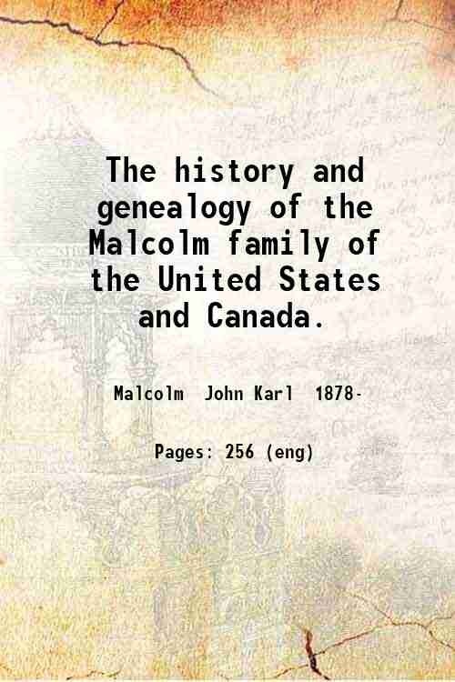 The history and genealogy of the Malcolm family of the United States and Canada. 1950