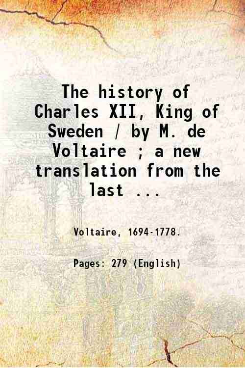 The history of Charles XII, King of Sweden / by M. de Voltaire ; a new translation from the last Paris edition. 1811