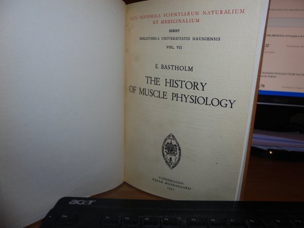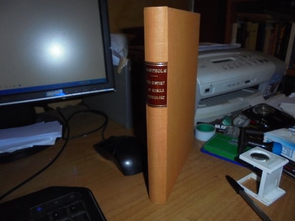 E. BASTHOLM. København, Ejnar Munksgaard, 1950. The History of Muscle Phisiology from the natural Philosophers to Albrecht von Haller. A study of the history of medicine with a summary in Danish. In-8° piccolo, tela con titolo in oro entro tassello al dorso, copertine originali conservate. 246, (1) pp. con 12 tavole ed alcune illustrazioni n.t. Perfetto esemplare in legatura recente con le brossure originali conservate. Uff. C - IV - 2