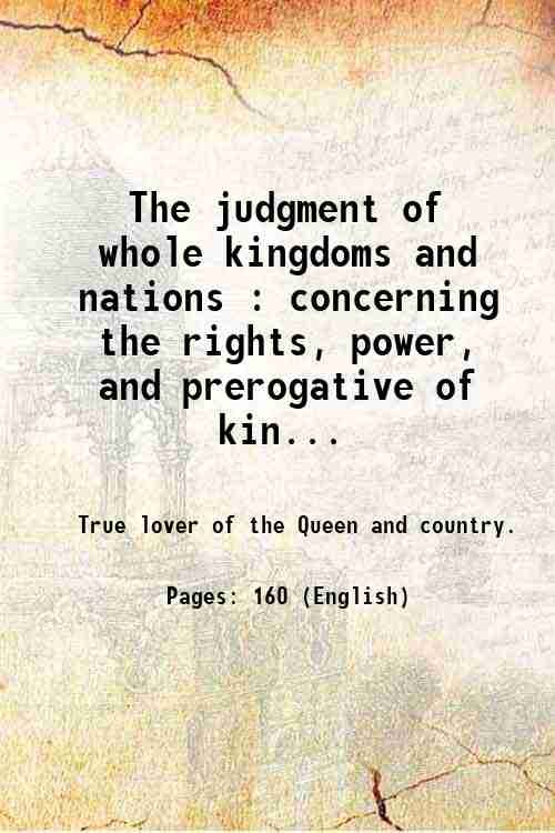 The judgment of whole kingdoms and nations : concerning the rights, power, and prerogative of kings, and the rights, privileges, & properties of the people . / by Lord Sommers 1774