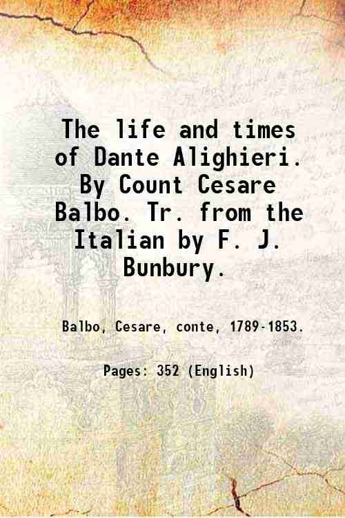 The life and times of Dante Alighieri. By Count Cesare Balbo. Tr. from the Italian by F. J. Bunbury. Volume 1 1852