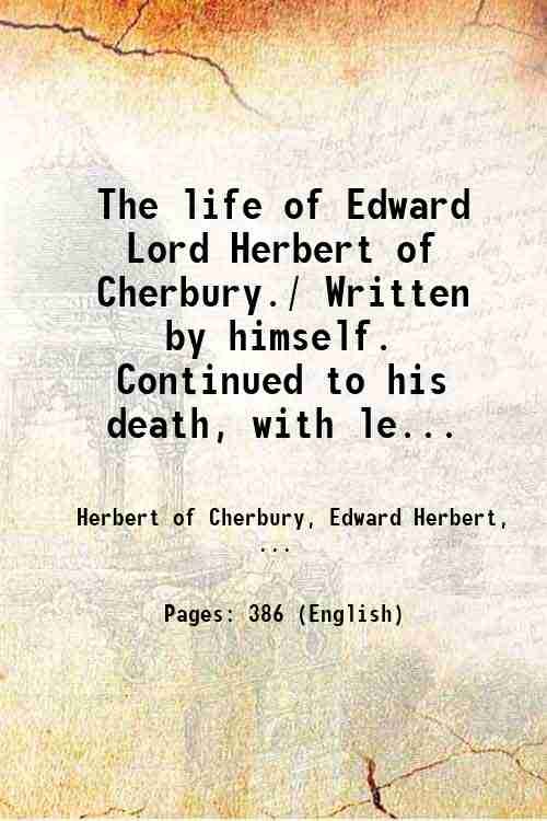 The life of Edward Lord Herbert of Cherbury./ Written by himself. Continued to his death, with letters written during his residence at the French Court, now first published from the originals. 1826