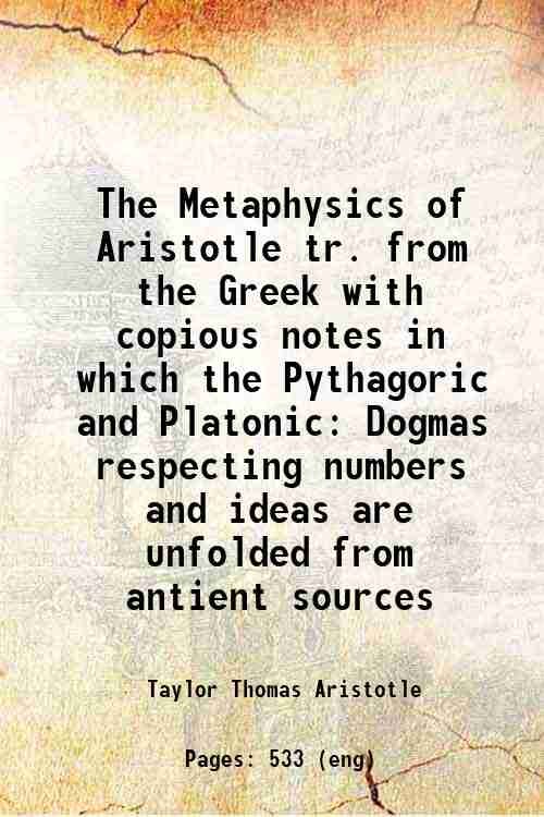 The Metaphysics of Aristotle tr. from the Greek with copious notes in which the Pythagoric and Platonic Dogmas respecting numbers and ideas are unfolded from antient sources 1801