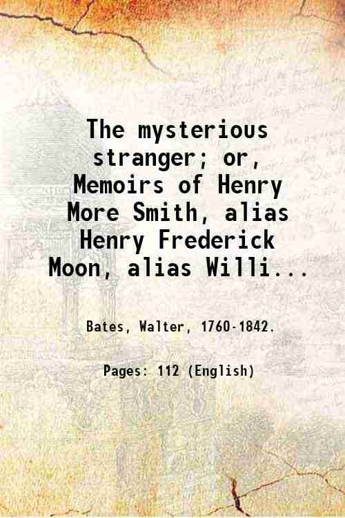 The mysterious stranger; or, Memoirs of Henry More Smith, alias Henry Frederick Moon, alias William Newman, who is now confined in Simsbury mines, in Connecticut, for the crime of of burglary : containing an acount of his confinement in the gaol of King's county, province of New-Brunswick, where he was under sentence of death : with a statement of his succeeding conduct before and since his confinement in Newgate. 1817