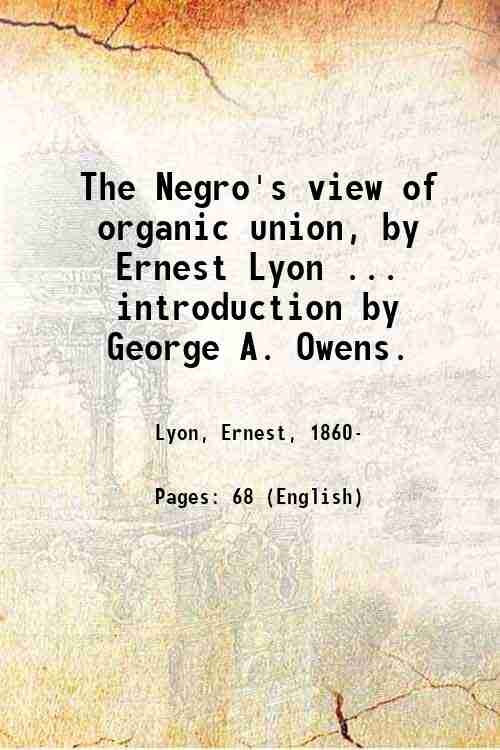 The Negro's view of organic union, by Ernest Lyon . introduction by George A. Owens. 1915