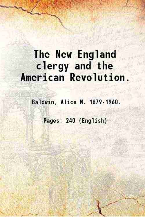 The New England clergy and the American Revolution. 1958 | Rare and modern books | Baldwin, Alice M.