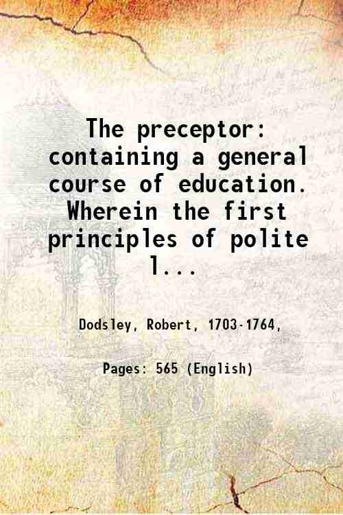 The preceptor: containing a general course of education. Wherein the first principles of polite learning are laid down in a way most suitable for trying the genius, and advancing the instruction of youth. In twelve parts. Illustrated with maps and useful cuts. Volume 1 (2 edition) 1754