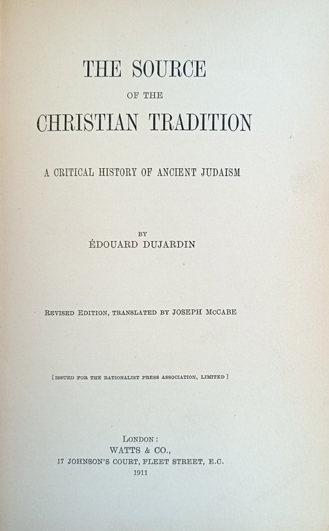 THE SOURCE OF THE CHRISTIAN TRADITION. A CRITICAL HISTORY OF ANCIENT JUDAISM