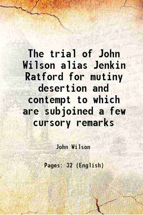 The trial of John Wilson alias Jenkin Ratford for mutiny desertion and contempt to which are subjoined a few cursory remarks 1807