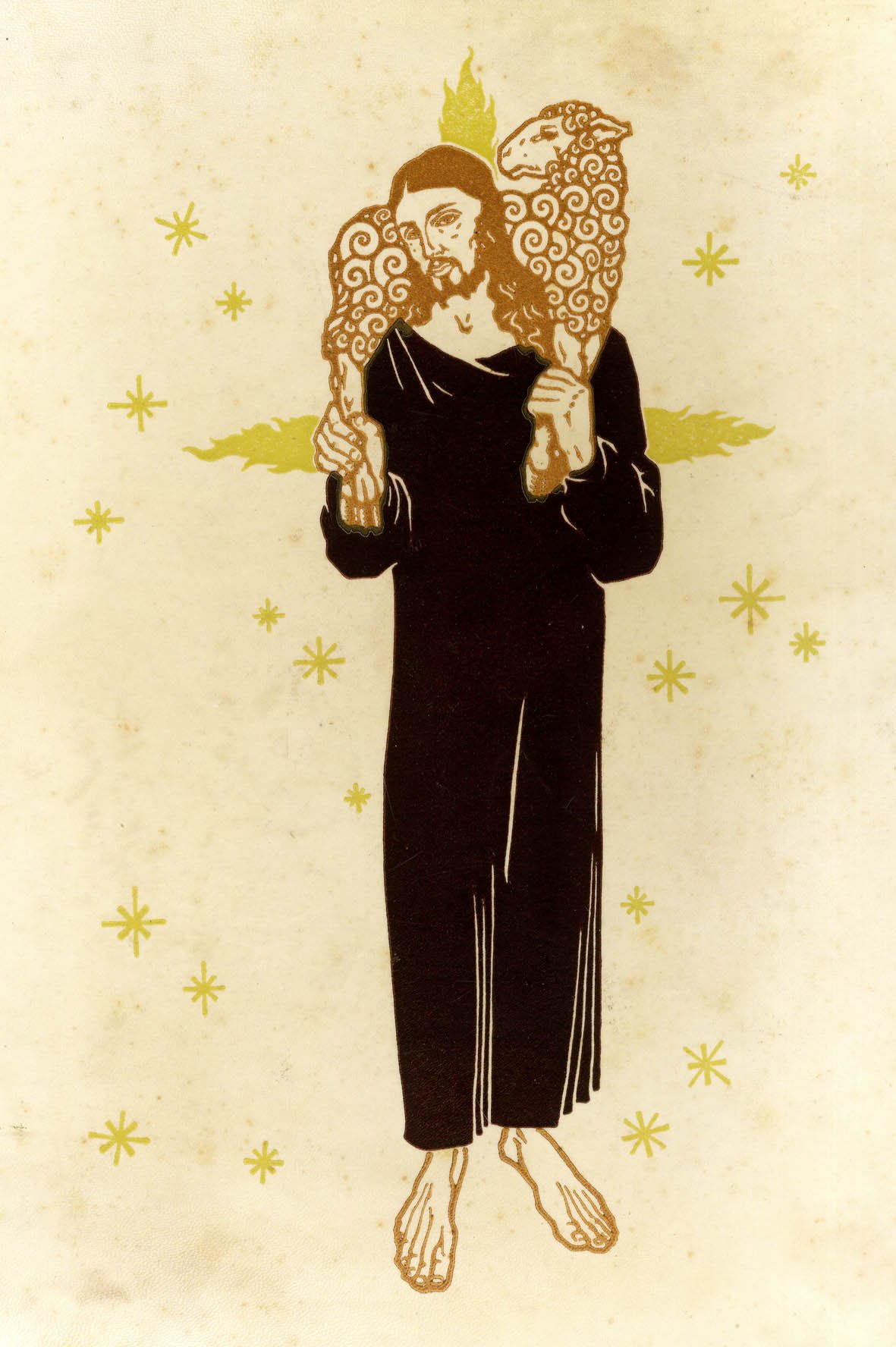 >in-folio (cm 38,8x33,4), 30 pagine su doppio foglio, legatura editoriale in pergamena con impresso in tricromia al piatto anteriore Cristo con pecora in spalle. Testo in lingua inglese con prefazione di Enrico Sartorio, segue il Salmo XXXIII impresso in rosso e nero su fondo con disegni decorativi in oro e ramages in nero; illustrato inoltre da nove tavole silografiche in bianco e nero applicate a fronte. Un ricco fregio silografico anche all'inizio e in fine al volume. Tiratura limitatissima di 100 copie numerate e firmate dall'illustratore Paschetto. Il nostro è l'esemplare n.73. Stupenda raffigurazione grafica del cosiddetto ''Salmo del buon pastore''. Paolo Paschetto (1885-1963), di famiglia valdese, fu professore di Ornato all'Istituto di Belle Arti di Roma dal 1914 al 1948, artista polivalente, passando dalla xilografia alla grafica, dall'olio all'affresco, dalla pittura religiosa al paesaggio. Risalgono al 1900 le sue prime xilografie di soggetto vario (paesaggi, ex libris, illustrazioni); dal 1910 in poi i suoi legni trattarono per lo più temi religiosi, tra queste: Il Credo Apostolico (otto grandi legni), Il Salmo del Buon Pastore (otto legni), Il Padre Nostro (otto legni), Costumi valdesi. E' di questo periodo la decorazione, eseguita da Paschetto, del Tempio Valdese di Roma in piazza Cavour; sempre su suoi cartoni vennero realizzate le vetrate. Fu autore tre l'altro di numerosi francobolli, compresa ''la rondine'' della prima emissione italiana di posta aerea e dell'emblema, simbolo ufficiale della Repubblica Italiana. A Roma è stato celebrato con la prima mostra monografica in suo onore da Febbraio a Settembre 2014. Sartorio (1884-1965) fu pastore della Christ Church (Episcopale, nota anche come Old North Church) a Boston e in seguito a capo della Missione per l'Italia della Chiesa Episcopale Usa. Nel corso degli anni fu autore di diversi volumi dedicati all'immigrazione degli italiani negli Usa (fenomeno che visse personalmente, trasferendosi giovanissimo negli Stati Uniti).