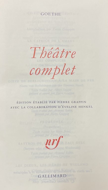 Edition étable par Pierre Grappin avec la collaboration d'Eveline Henkel. in ottavo leg. cart., mancante di cofanetto e sovraccoperta pp. 1822 Buono (Good) Buon es..