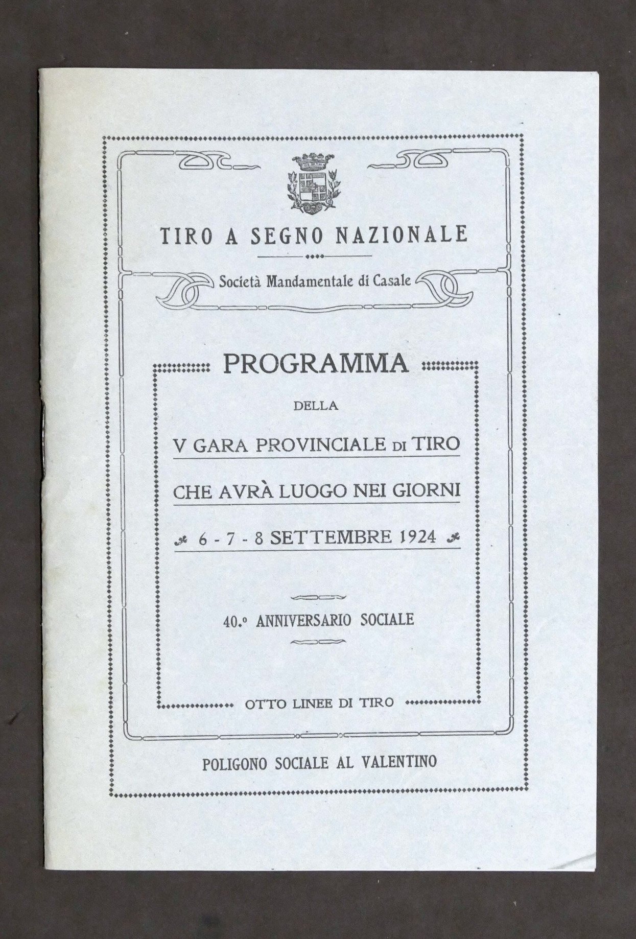Tiro a Segno Nazionale - Società di Casale - Programma V Gara Provinciale - 1924