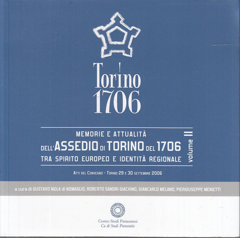 TORINO 1706. Memorie e Attualità dell'Assedio di Torino del 1706 tra Spirito Europeo e Identità Regionale. Atti del Convegno - Torino 29 e 30 settembre 2006. Volume II
