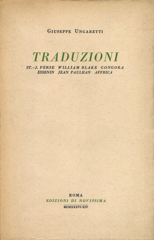 Traduzioni. St-J Perse William Blake Gongora Essenin Jean Paulhan Affrica