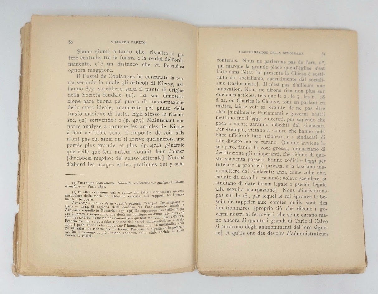 >in-16, pp. 141, (2); broch. edit. Prima edizione collettiva dei 4 articoli pubblicati sulla Rivista di Milano tra il 5 Maggio ed il 20 luglio 1920: ''Generalità'', ''Sgretolamento della Sovranità centrale'', ''Il Ciclo plutocratico'', ''I Sentimenti''. Esemplare con gli ultimi 30 ff. più corti, difetti alla broch.