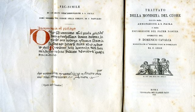 Trattato della mondizia del cuore seguito dalla Ammonizione a S. Paola e dalla Esposizione del Pater Noster. Operette riscontrate su'migliori codici e pubblicate da O. Gigli