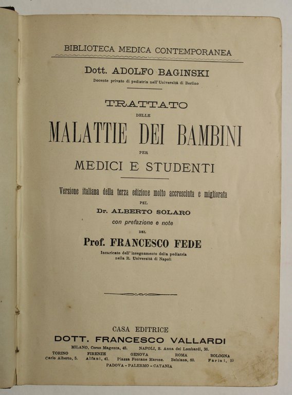 Trattato delle malattie dei bambini…versione italiana della terza tedesca molto accresciuta e migliorata pel Dr. Alberto Solaro