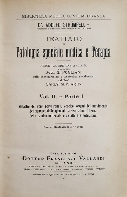 TRATTATO DI PATOLOGIA SPECIALE MEDICA E TERAPIA