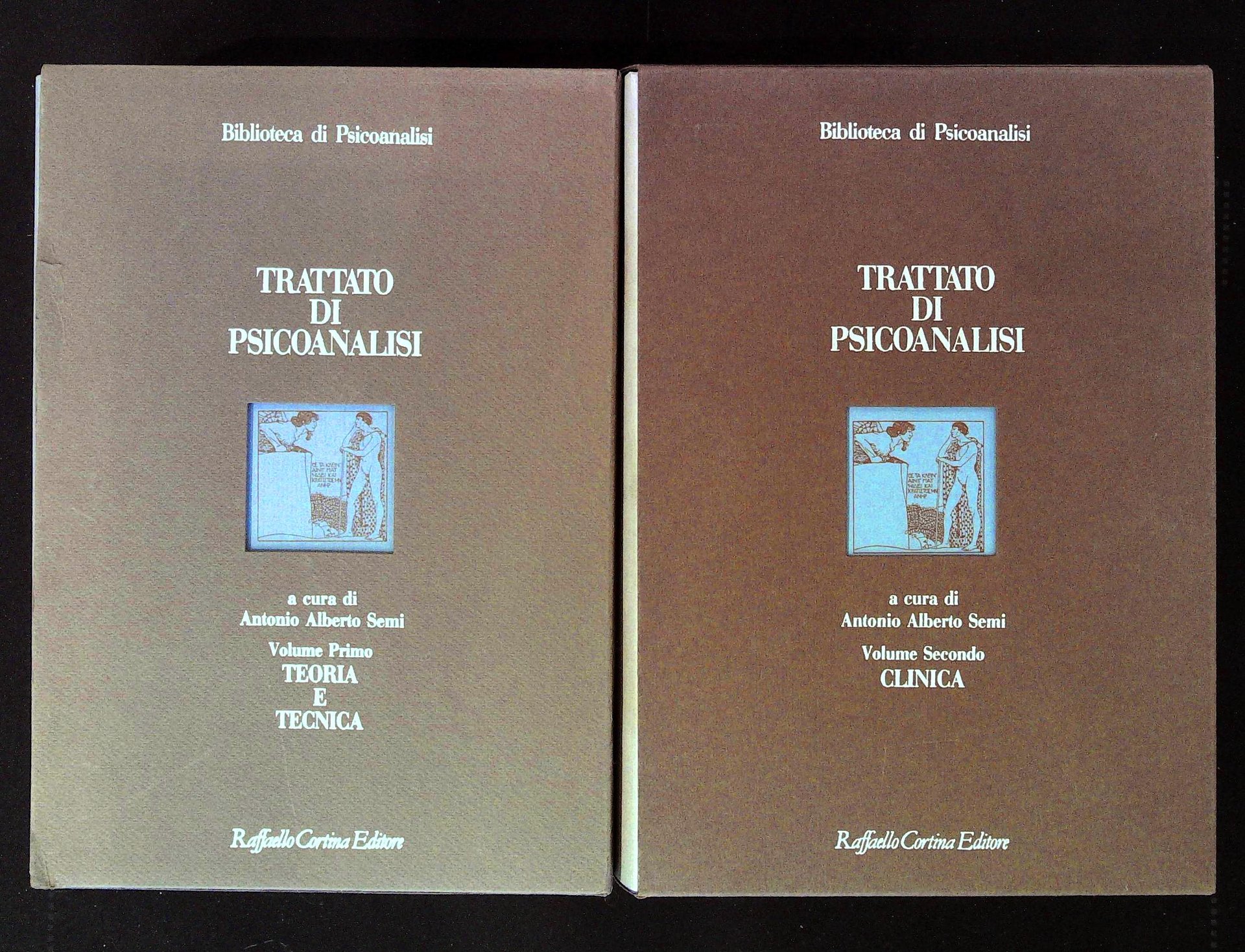 in 8° grande (25x18cm), tela ed. sov. in astuccio morbido con fustellatura al piatto, Volume I "Teoria e tecnica" pp. XXXVII - 913 / Volume II "Clinica" pp. XLI - 990 coll. Biblioteca di Psicoanalisi Illustrazioni b/n n.t. e f.t. A cura di Antonio Alberto Semi. Leggeri segni del tempo ai dorsi, altrimenti in ottimo stato (A28)