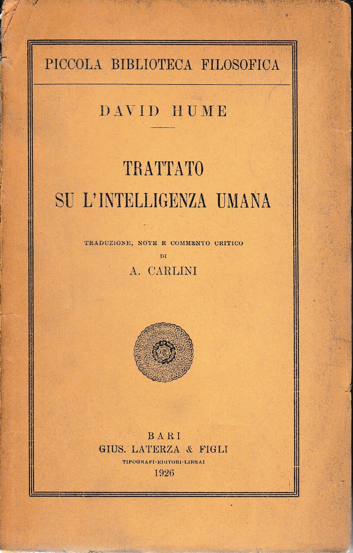 Copertina cartonata con segni d'uso, qualche mancanza ai margini, dorso usurato, legatura allentata. Quarta di copertina staccata. Tagli intonsi, Pagine ingiallite. Collana: "Piccola Biblioteca Filosofica". Mediocre (Poor) .