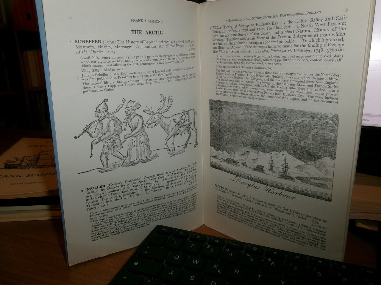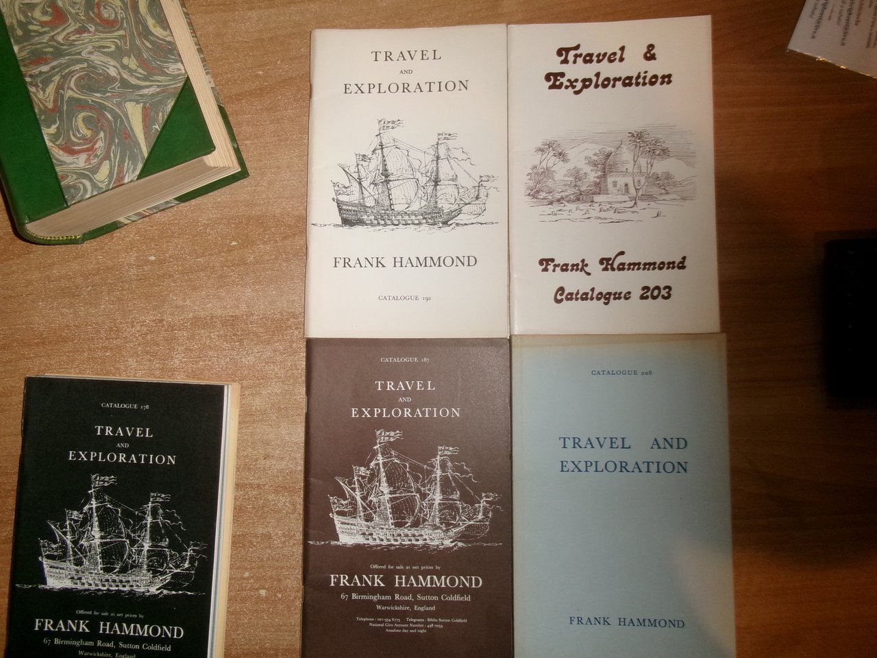 Travel and Exploration. 6 cataloghi di FRANK HAMMOND. Warwickshire, England. Catalogue n° 200 - 192 - 187 - 208 - 178 - 5 - 203. In-8° br. alcuni con illustrazioni. I prezzi sono in sterline. Ottimo stato. Neg. magaz. mob. grigio entro busta trasp.