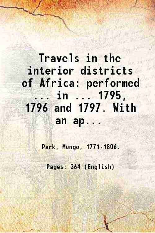 Travels in the interior districts of Africa: performed . in . 1795, 1796 and 1797. With an appendix containing geographical illustrations of Africa by Major Rennell . 1813