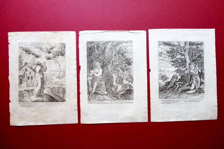 Tre Incisioni Originali Francesco Valesio Bologna Eremiti Ilario Anub Paolo '600