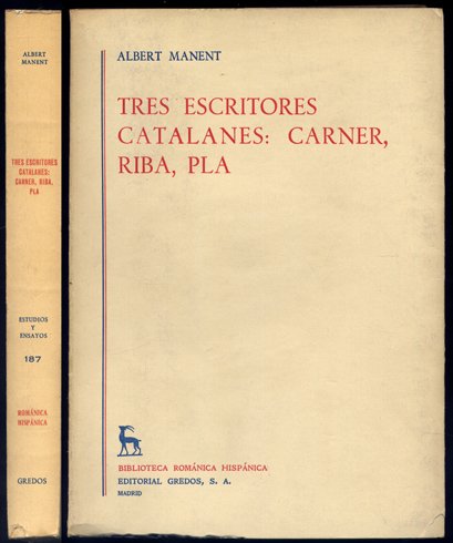 Tres escritores catalanes: Carner, Riba, Pla. | Rare and modern books | Manent, Albert.